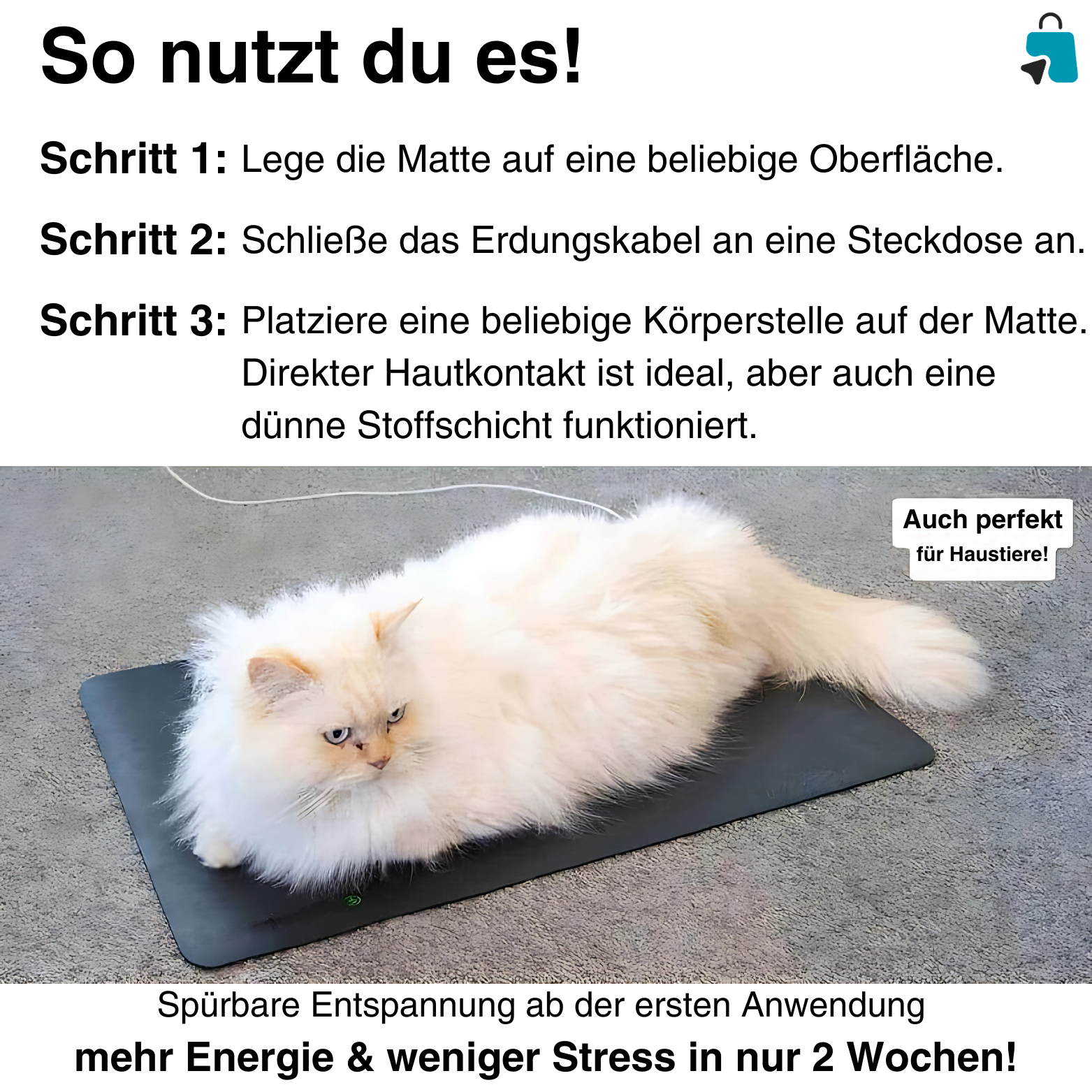 Die BioGround Erdungsmatte stellt dein elektrisches Gleichgewicht wieder her. Störfelder werden abgeleitet – mehr Energie, bessere Durchblutung & tiefere Erholung.
